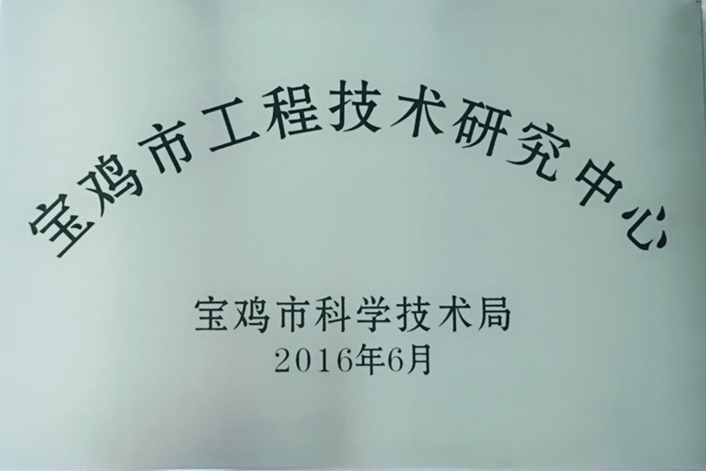 2016年8月5日上午,寶雞市科技局經(jīng)過(guò)綜合評(píng)估決定對(duì)我公司成為“寶雞市工程技術(shù)研究中心” 予以授牌。